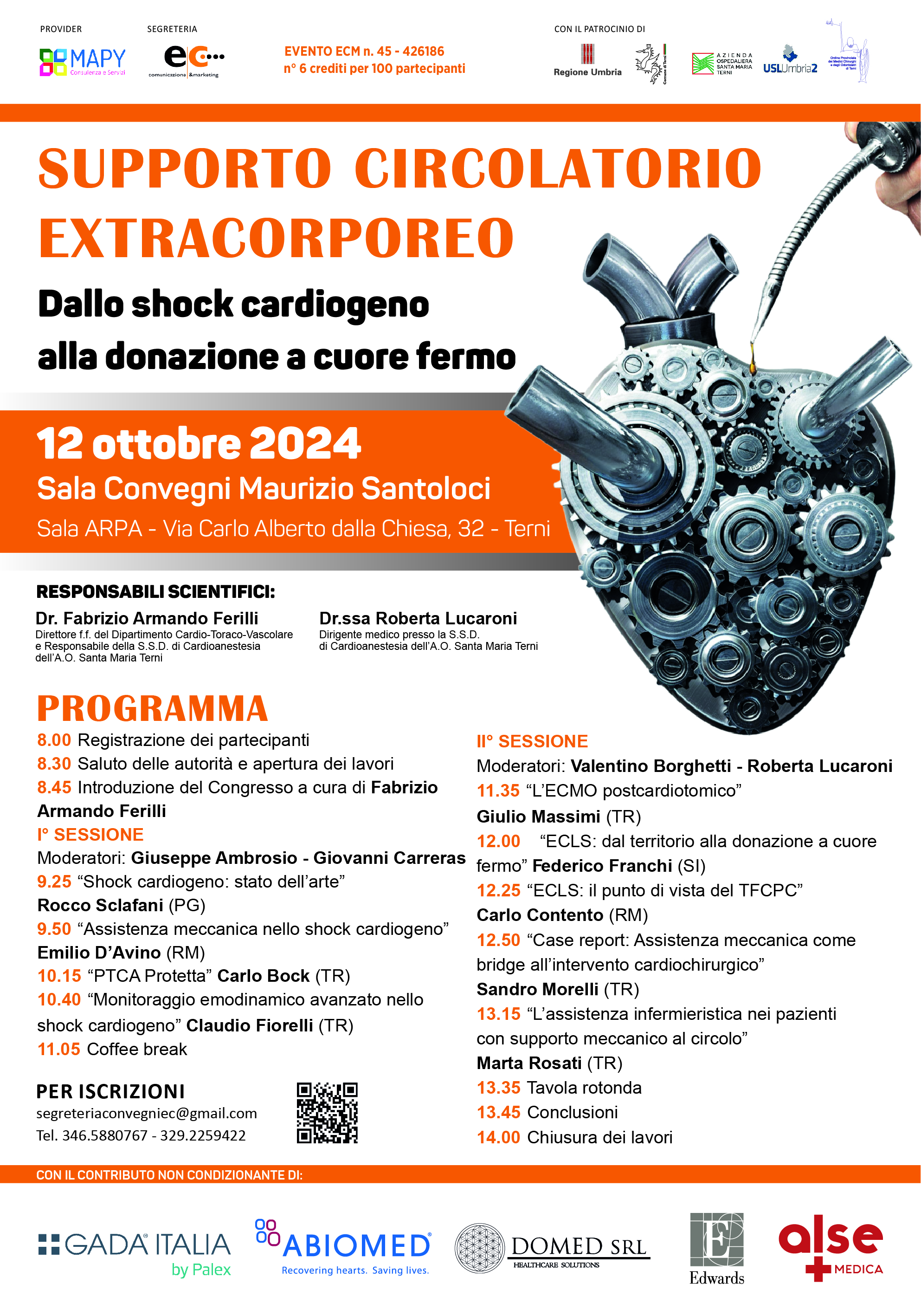 Pubblicato: 30 Agosto 2024 Ultima modifica: 08 Ottobre 2024 Eventi patrocinati Supporto circolatorio extracorporeo: dallo shock cardiogeno alla donazione a cuore fermo Terni - 12 ottobre 2024 Arpa Umbria. image Locandina Supporto Circolatorio Extracorporeo 12 ottobre